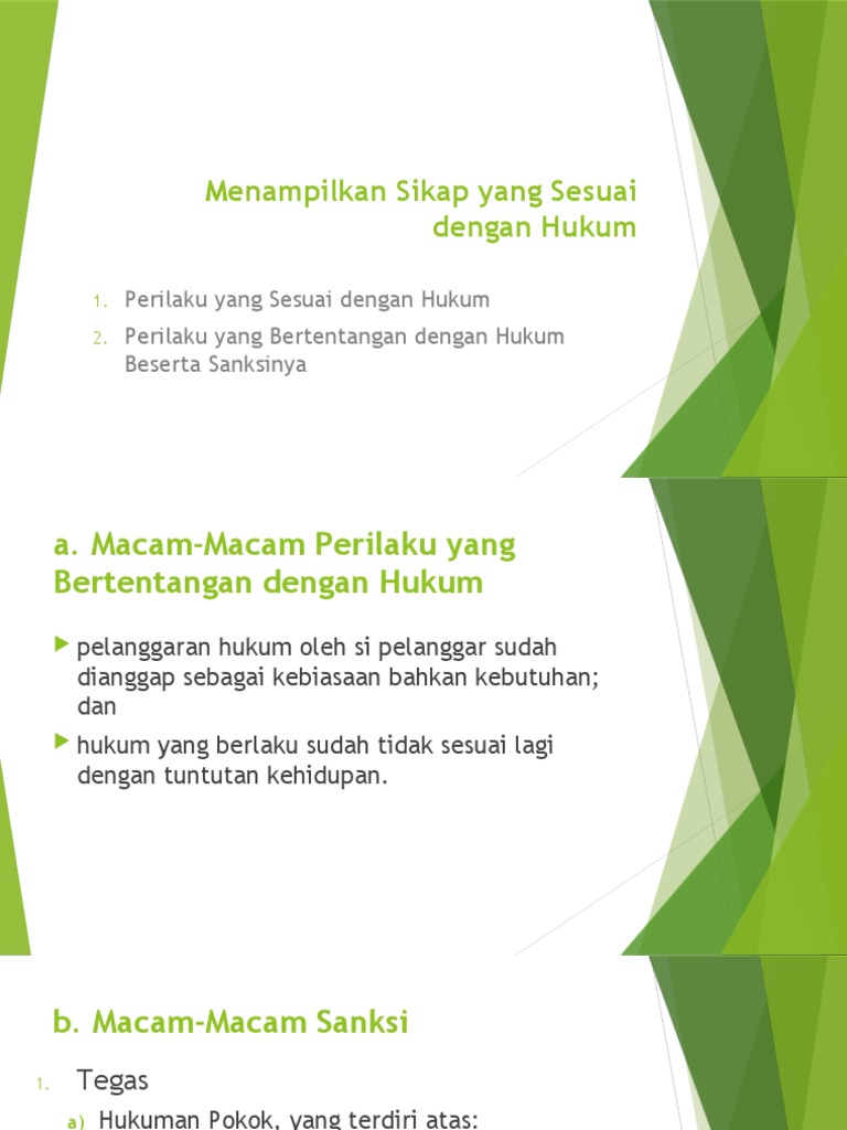 Contoh Sikap yang Sesuai dengan Ketentuan Hukum yang Berlaku | ... Hukum adalah himpunan petunjuk hidup (perintah-perintah dan larangan-larangan) yang mengatur tata tertib dalam masyarakat yangseharusnya di...